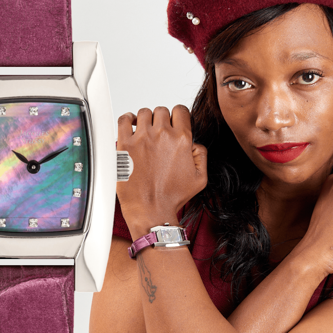 Les courbes, ses finitions raffinées et ses diamants scintillant sur cette nacre noire aux reflets différents pour chaque exemplaire, accompagnés par le bracelet de votre choix, confèrent à ce garde temps une élégance et un style rare et précieux qui feront de vous une personne unique.